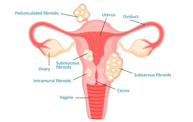 Uterine fibroids can be of different types depending on how they attach and where they are located.