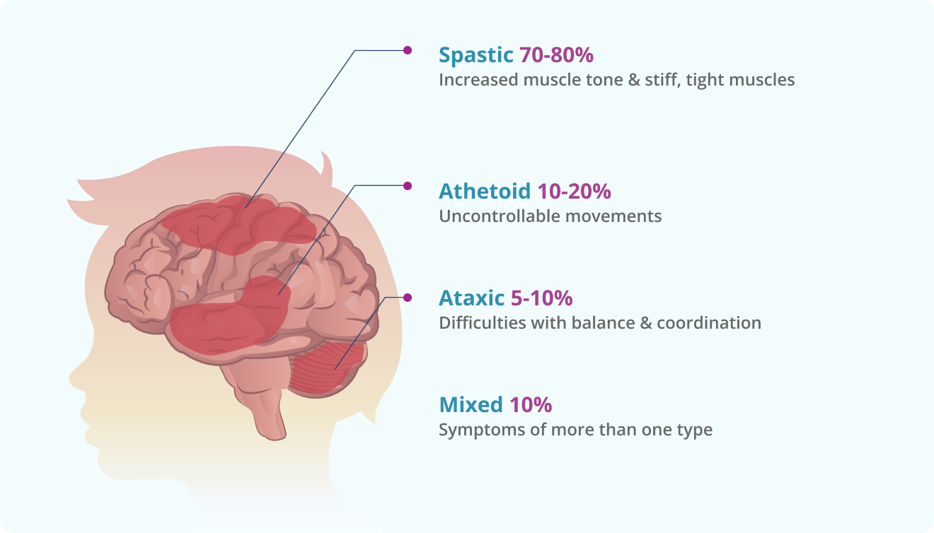 Cerebral palsy is categorised based on the type of movement disorder and the body parts affected. Understanding these types helps in tailoring treatment and rehabilitation strategies.